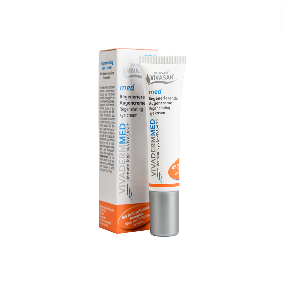 Регенерирующий крем Vivaderm Med — липидовосполняющая формула для деликатной кожи век, которая увлажняет, успокаивает и поддерживает восстановительные процессы кожи вокруг глаз.